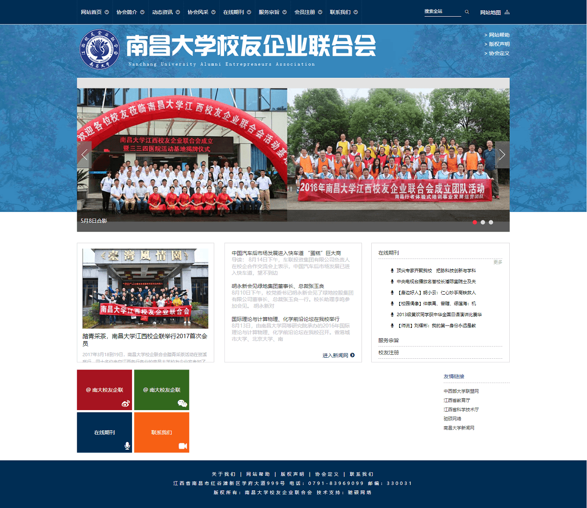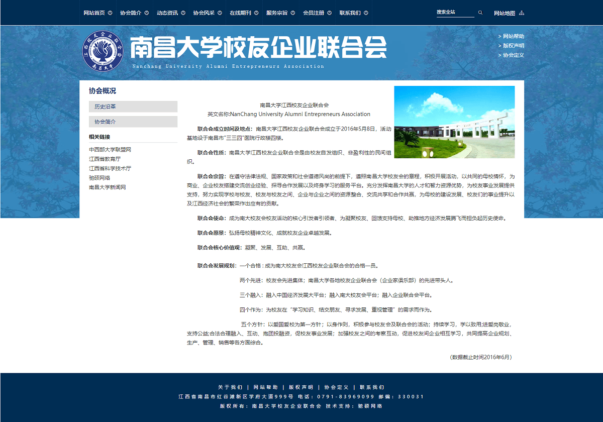 南昌大學(xué)江西校友企業(yè)聯(lián)合會成立于2016年5月8日,活動基地設(shè)于南昌市"三三四"醫(yī)院行政樓四樓。南昌大學(xué)江西校友企業(yè)聯(lián)合會是由校友自發(fā)組織、非盈利性的民間組織。